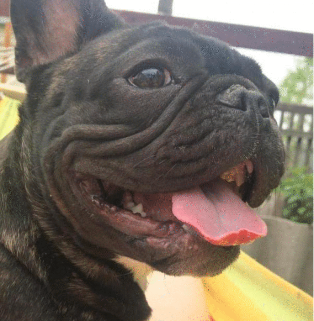 The French Bulldog is a short, sturdy dog. Some French Bulldogs grow to be very small, smaller than the average. This breed is incredibly affectionate and friendly. They come in various coat colors: brindle, spotted, white, or tiger-striped. This dog is strong, free-spirited, and confident! I have a French Bulldog named Tiki, who’s been with us for about four years. My family and I absolutely adore him. Let me share a story from our life. One time, we forgot to lock Tiki in the kitchen. In the hallway, we had two bags of flour. I came home from school to find the entire house covered in white—flour everywhere! I walk into the kitchen, and there’s Tiki, hiding under the table, giving me the most innocent look. I’ll say this: this breed can be quite noisy! But they bring immense joy to our entire family.
